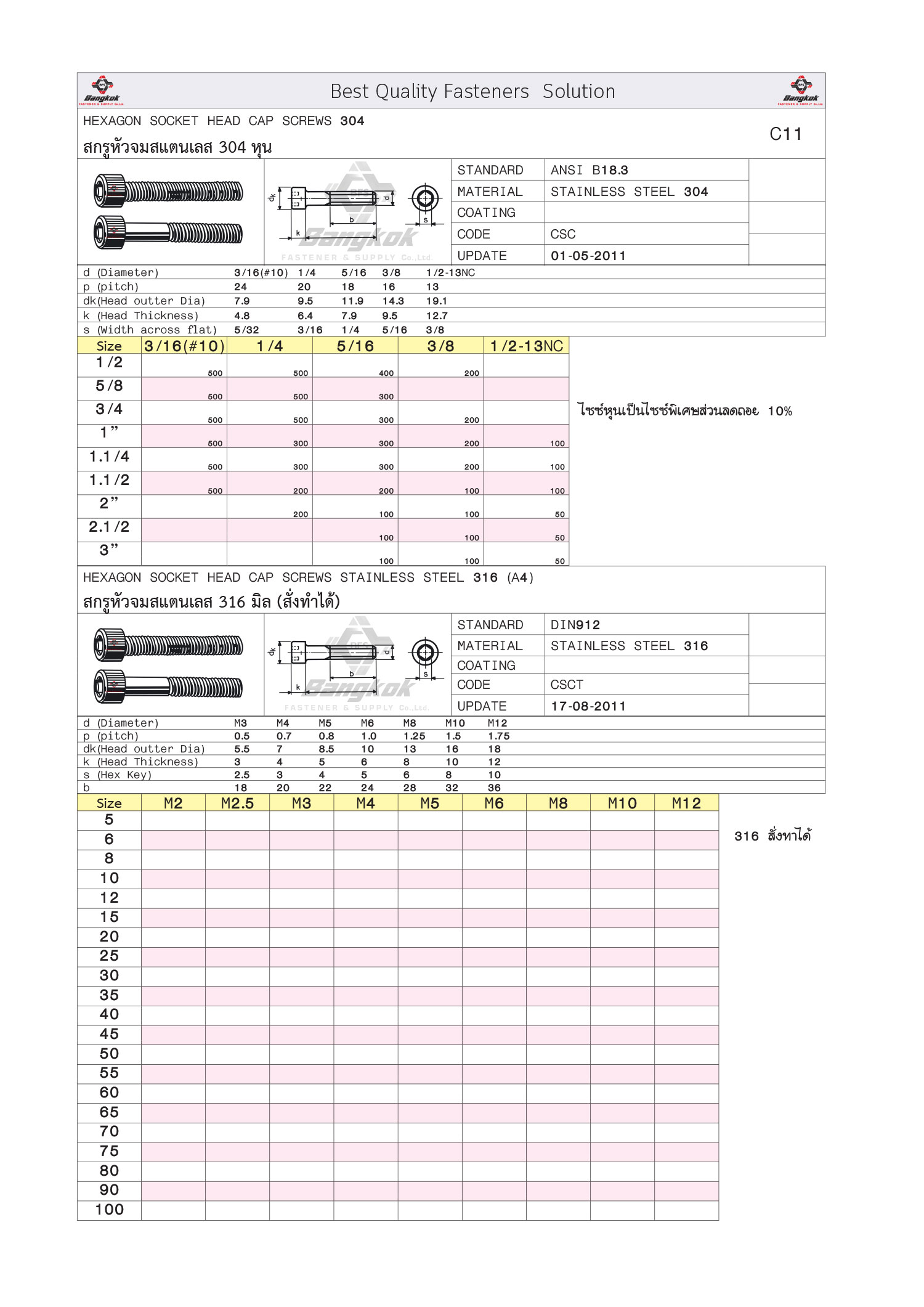 สกรูหัวจมสแตนเลส 316 หุน